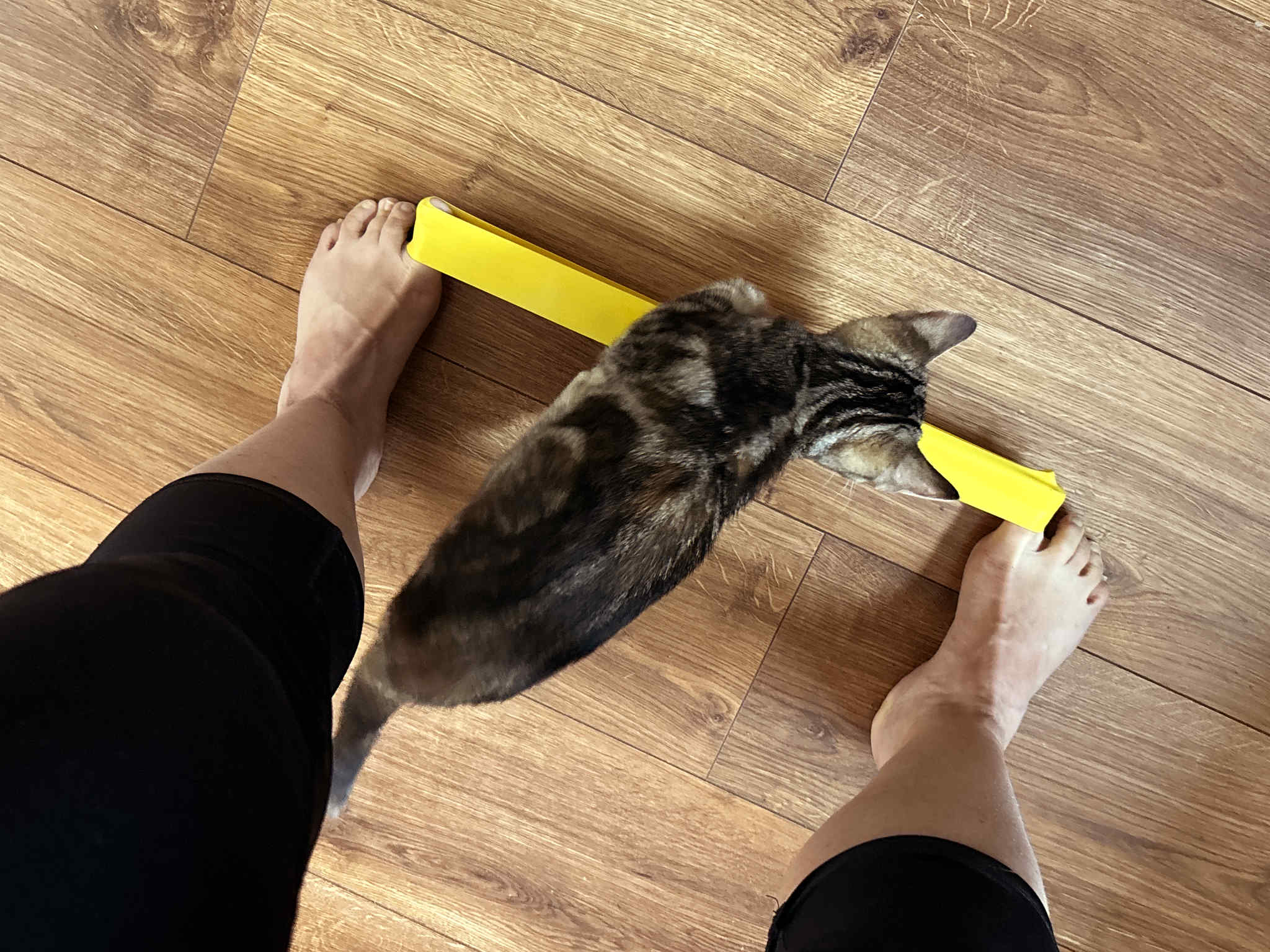 I started the day with pogo hops, toe extensions, arch doming, balance with weights (slow marches) and a plank. Everything was successful except Elsa got a bit too interested in my resistance band!